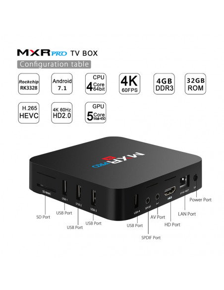 Este modelo vem equipado com o processador Rockchip RK3328, um processador eficiente que permite reproduzir vídeos em 4K com codecs H.265, H.264 e VP9, suportando também HDR. A sua capacidade de processamento garante uma reprodução fluida e sem interrupções, mesmo para os conteúdos mais exigentes. A inclusão de uma porta HDMI 2.0 assegura a compatibilidade com as mais recentes TVs 4K, permitindo desfrutar de uma resolução UHD.