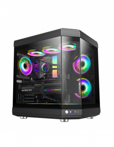 O chassis Gamemax Onyx II apresenta um design elegante e moderno, com painel lateral em vidro temperado que permite visualizar os componentes internos. A iluminação ARGB, adiciona um toque de estilo e permite personalizar a estética do computador. A fonte de alimentação de 850W 80+ Gold Modular garante a eficiência energética e a fiabilidade do sistema, fornecendo energia suficiente para todos os componentes, mesmo sob uso intensivo.