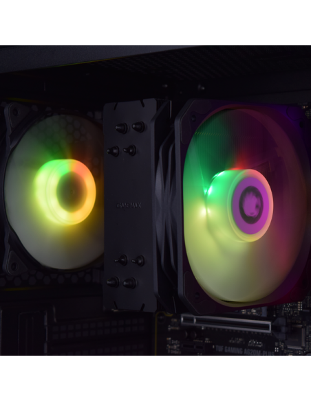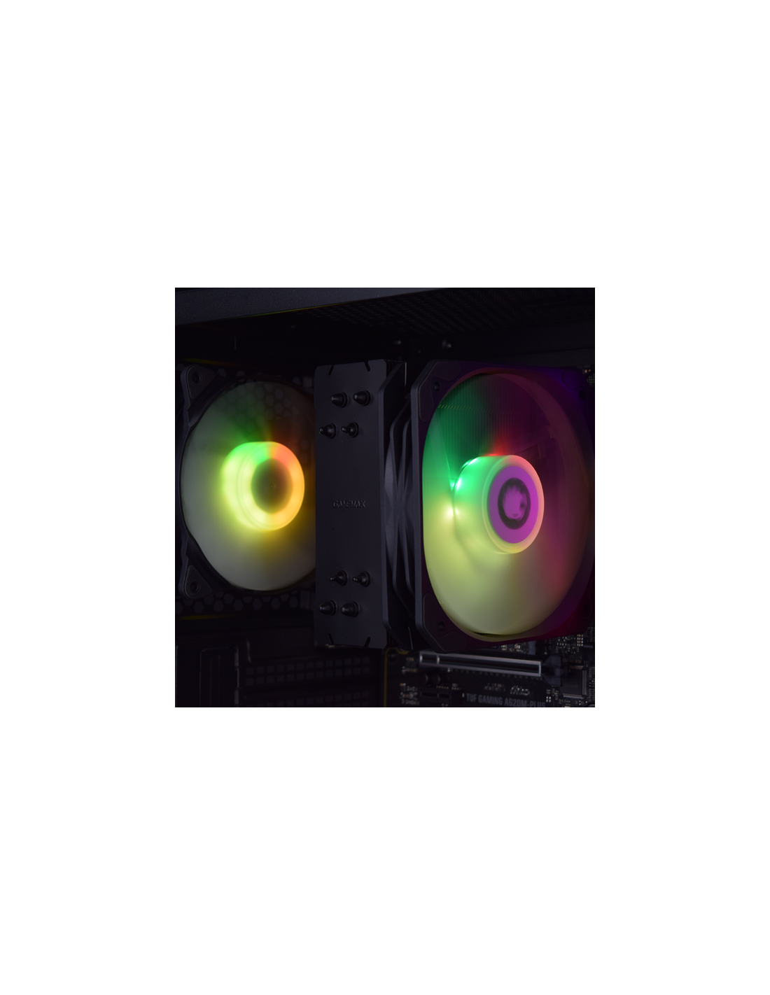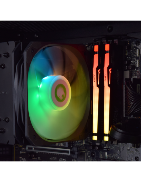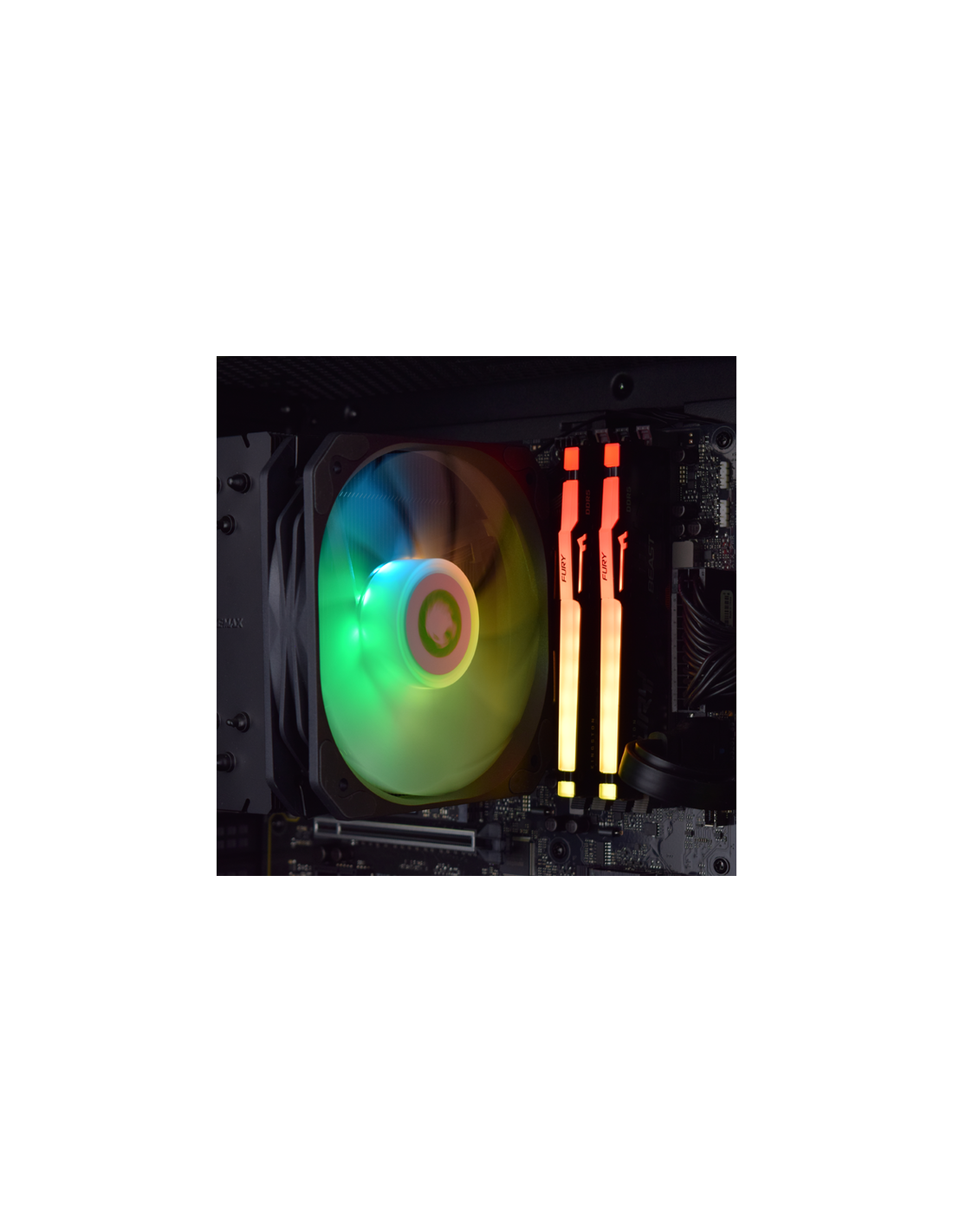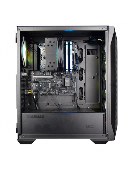 Adicionalmente, foi incluído um cooler de CPU com iluminação ARGB, projetado para manter o processador a temperaturas ideais, garantindo alta eficiência de refrigeração, operação silenciosa e um visual apelativo.