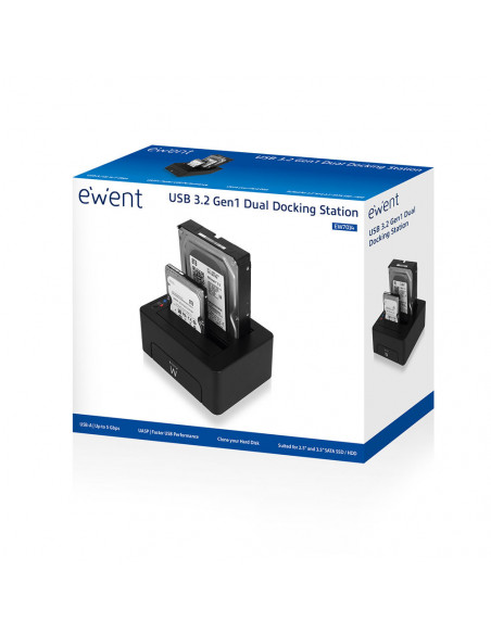Docking Station Ewent EW7014: HDD/SSD, SATA III, USB 3.2 Gen 1, 2.5/3.5"