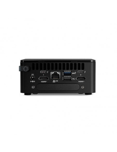 Este mini PC destaca-se pelas suas características compactas com dimensões de 117 x 112 x 54 mm e um peso de 750 g. Possui duas portas Thunderbolt 4, ideal para transferir dados a alta velocidade. Além disso, dispõe de várias portas USB 3.2 Gen 2, portas HDMI 2.1, e uma porta Ethernet LAN (RJ-45). Inclui também um combo de saída de auriculares/microfone.