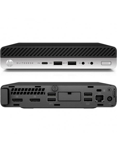 Computador HP EliteDesk 800 G5 Mini reacondicionado, garantindo desempenho eficiente para tarefas do dia a dia. Com processador Intel Core i5-9500T, 8GB de RAM e um rápido SSD de 256GB. Sistema operativo Windows 10 Pro (não instalado). Inclui 1 ano de garantia.