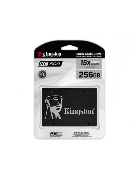 Kingston Technology KC600. SDD, capacidad: 256 GB, Factor de forma de disco SSD: 2.5´´, Velocidad de lectura: 550 MB/s, Velocidad de escritura: 500 MB/s, Velocidad de transferencia de datos: 6 Gbit/s, Componente para: PC/ordenador portátil