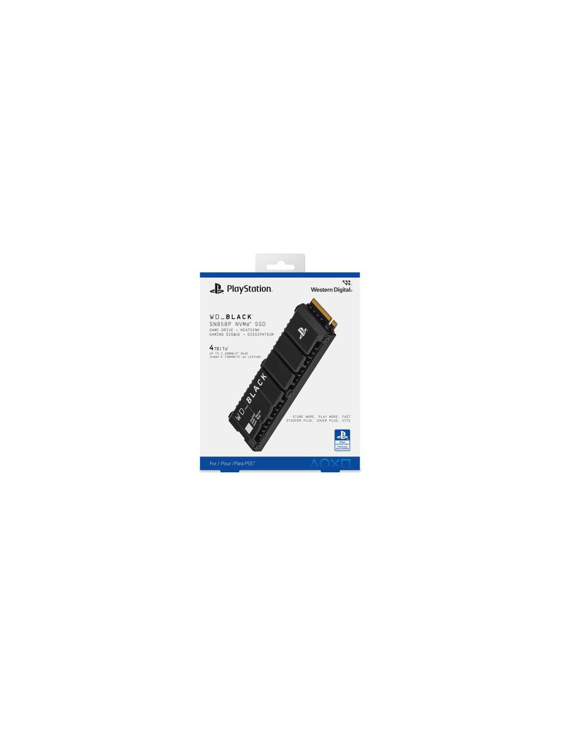 SSD SanDisk SN850P de 4TB, com interface PCIe 4.0 NVMe e formato M.2. Oferece velocidades de leitura até 7300 MB/s e escrita até 6600 MB/s. Ideal para consolas de jogos, especialmente a PlayStation 5.