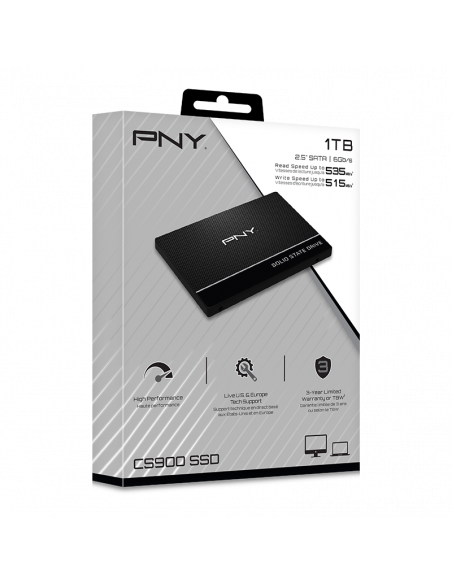O SSD PNY CS900 de 1TB, com fator de forma 2.5", é uma excelente opção para quem procura atualizar o seu computador com uma solução de armazenamento mais rápida e eficiente. Este SSD foi projetado para substituir discos rígidos (HDDs) tradicionais, oferecendo uma melhoria significativa no desempenho geral do sistema, incluindo tempos de inicialização mais rápidos, maior capacidade de resposta e carregamento mais ágil de aplicações.