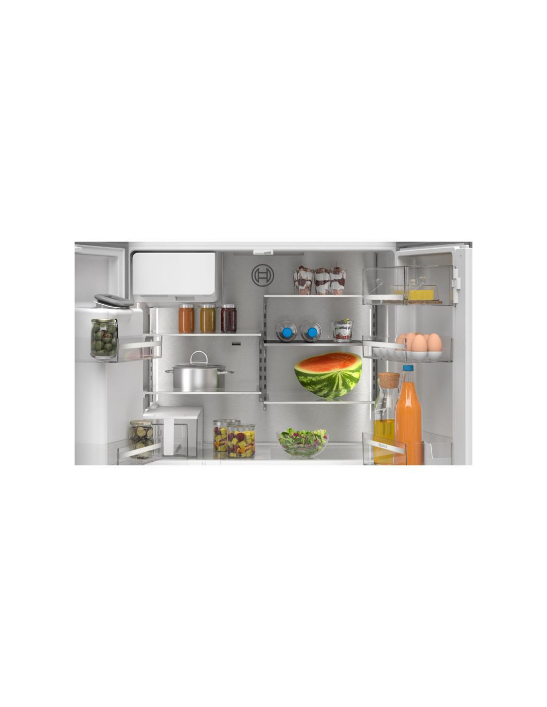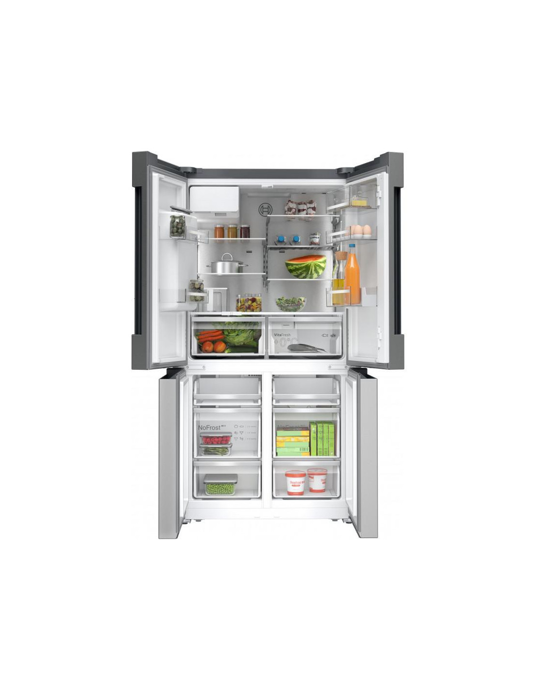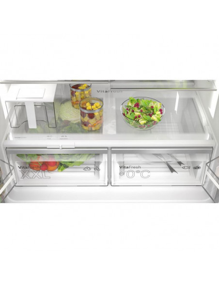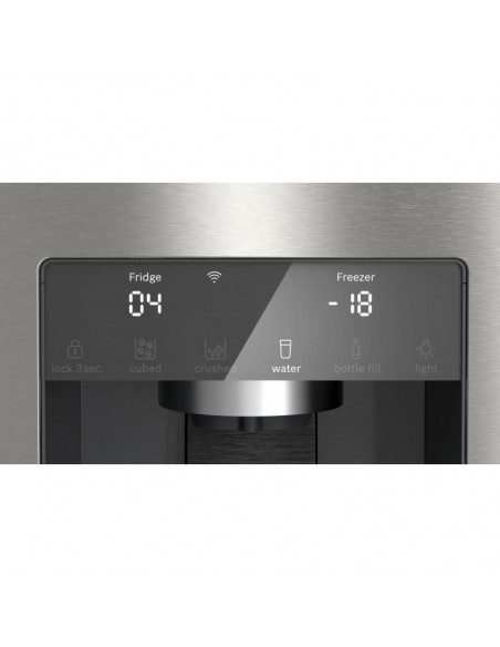 Bosch Serie 6 KFI96APEA. Local de colocação: Independente, Design de produto: Porta múltipla, Cor do produto: Aço polido. Capacidade total líquida: 574 l, Classe climática: SN-T, Classe de emissão de ruído: C. Capacidade líquida do frigorífico: 375 l, Tipo de lâmpada: LED. Capacidade líquida do congelador: 199 l, Posição de congelador: Inferior, Capacidade de congelação: 16 kg/24h. Comprimento do fio: 2,4 m, Aplicações de controlo suportadas: Home Connect ;