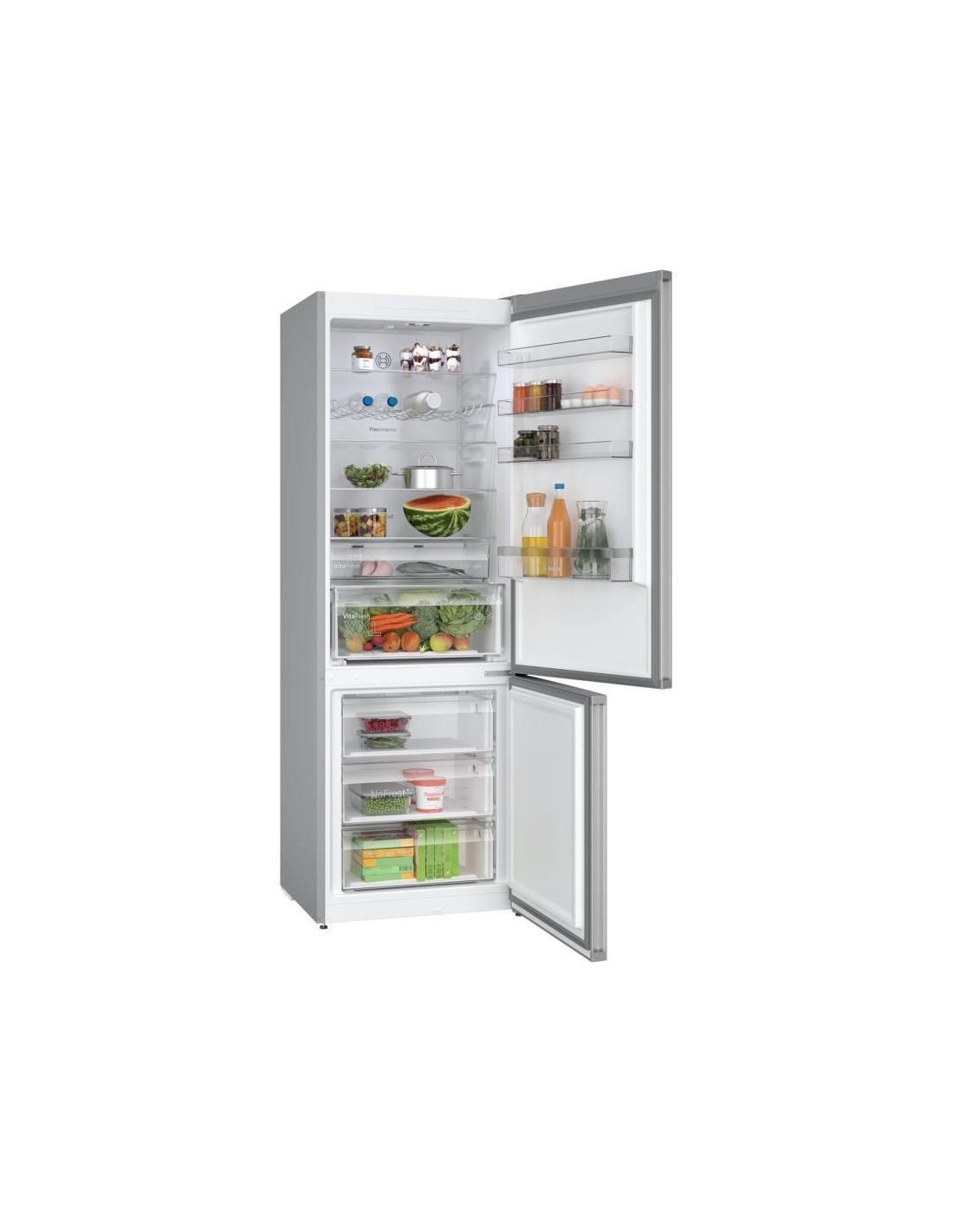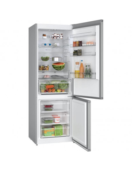 Bosch Serie 4 KGN497LDF. Capacidade total líquida: 440 l. Dobradiça da porta: Direita, Tipo de monitor: LED. Classe climática: SN-T, Nível de ruído: 35 dB. Capacidade líquida do frigorífico: 311 l, Sistema no-frost (frigorífico), Sistema multi-airflow (frigorífico), Luz interior do frigorífico. Capacidade líquida do congelador: 129 l, Capacidade de congelação: 9,5 kg/24h, Sistema no-frost (congelador). Compartimento de zona fresca. Classe de eficiência energética: D, Consumo de energia anual: 223 kWh ;