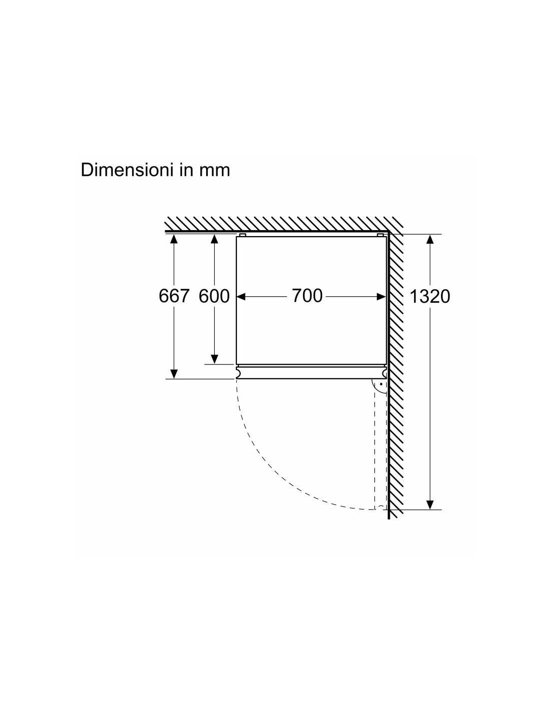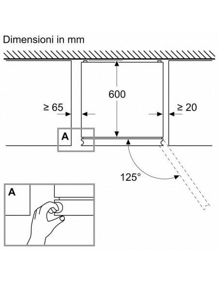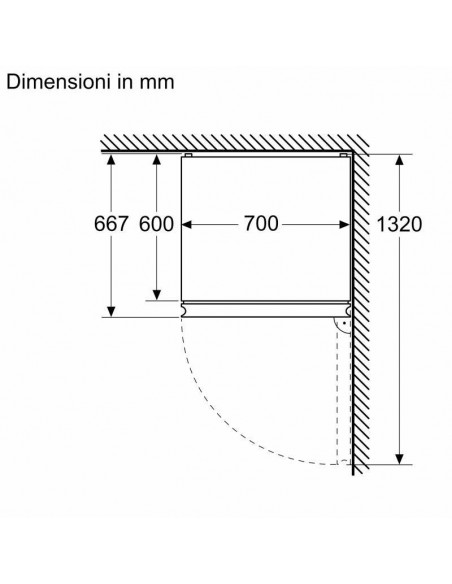 - Ângulo de abertura da porta: 125°