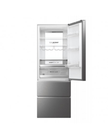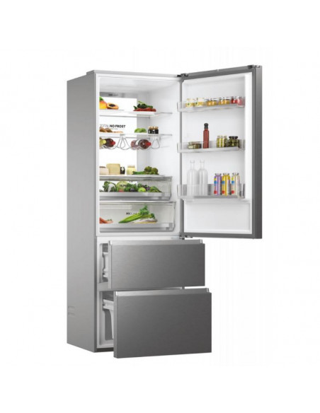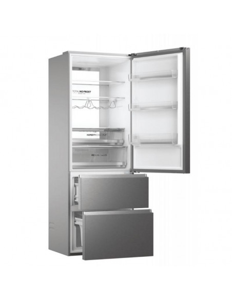 Com 70 cm de largura, os frigoríficos de três portas 70 da Haier dispõem de um sistema de gavetas do congelador com uma tecnologia impressionante que não só permite uma utilização mais eficiente do espaço para os seus congelados, como também garante um acesso rápido a todo o congelador, poupando até 60% mais energia em comparação com combinados semelhantes. Os Fresher Techs® estão constantemente a ajustar as condições para garantir que a qualidade dos alimentos é preservada. Os frigoríficos 3D 70 Série 7 da Haier garantem a conservação perfeita dos seus alimentos graças a zonas especializadas bem como outras soluções tanto nos compartimentos do frigorífico como do congelador. ;