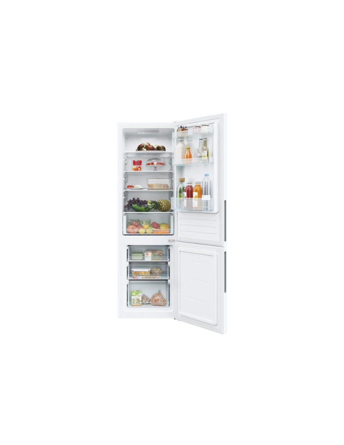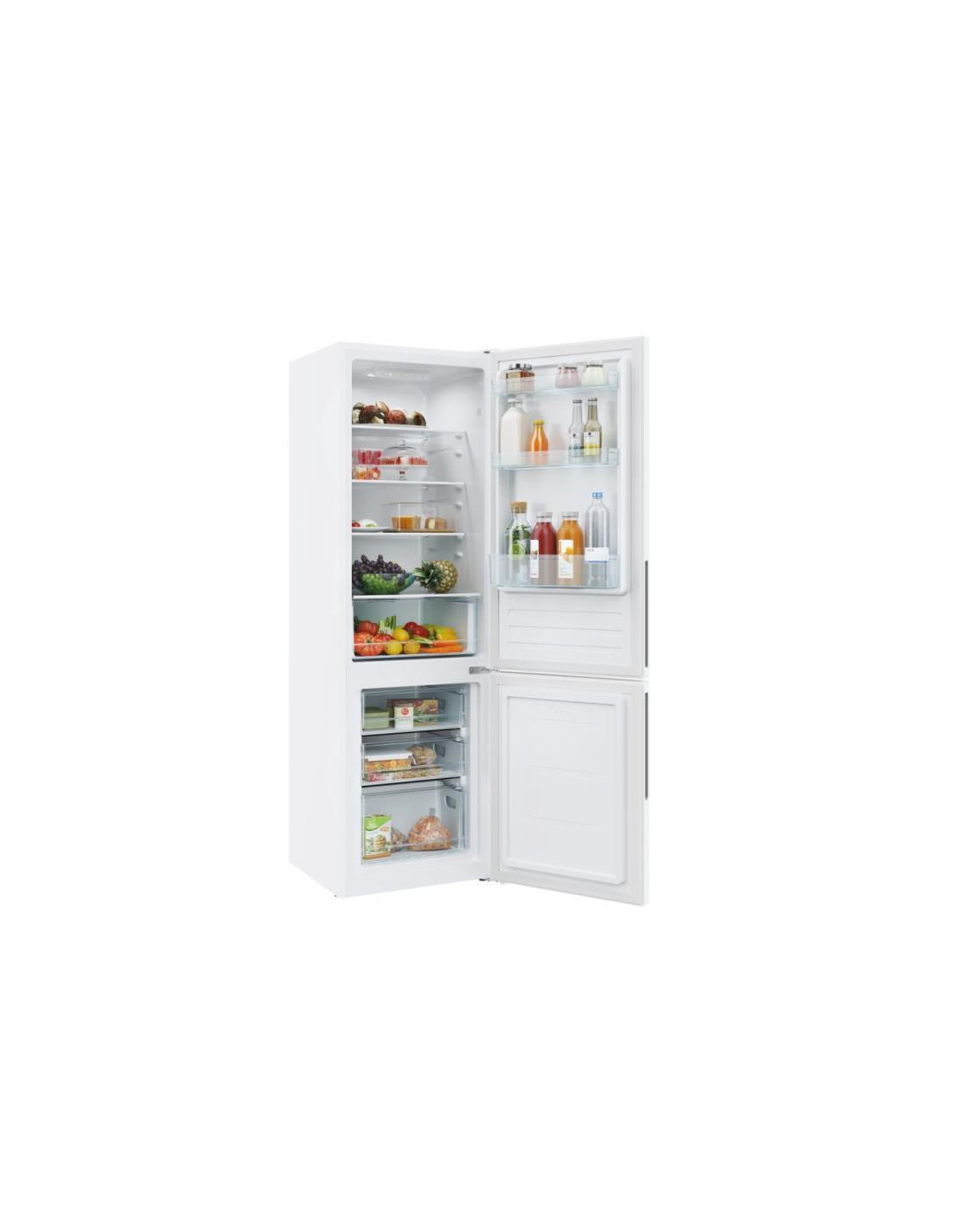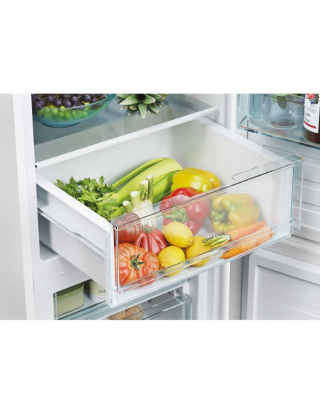 Candy City Combi CCT3L517EW. Capacidade total líquida: 260 l. Dobradiça da porta: Direita. Classe climática: ST, Nível de ruído: 39 dB. Capacidade líquida do frigorífico: 186 l, Luz interior do frigorífico, Prateleiras do frigorífico: 4, Número de gavetas para legumes: 1. Capacidade líquida do congelador: 74 l, Capacidade de congelação: 3,3 kg/24h. Classe de eficiência energética: E, Consumo de energia anual: 214 kWh. Cor do produto: Branco. ;