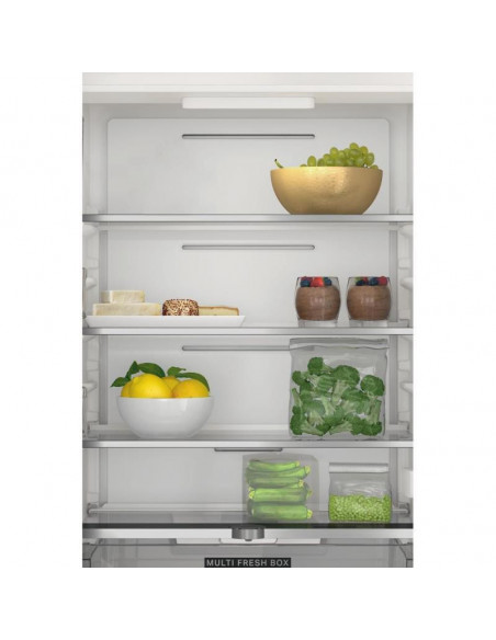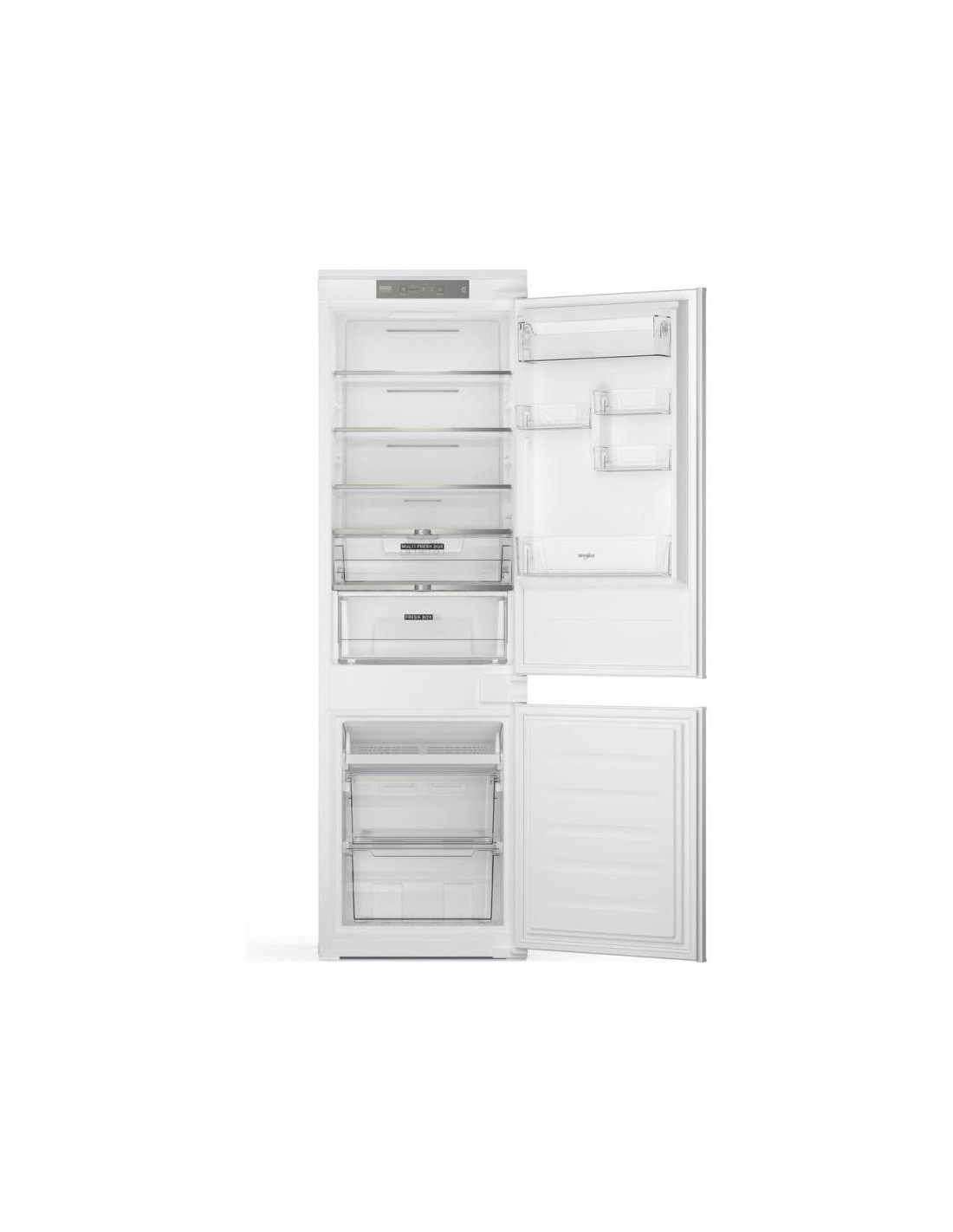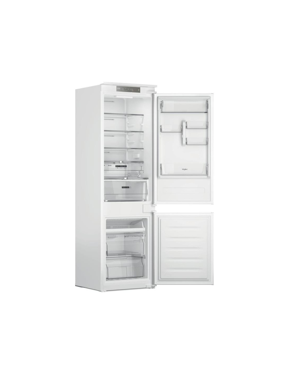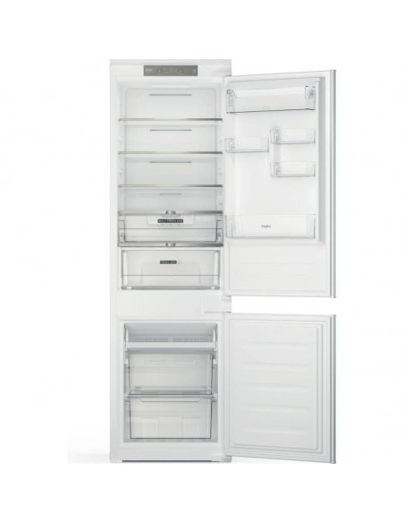 Whirlpool WHC18 T322. Capacidade total líquida: 220 l. Dobradiça da porta: Direita. Nível de ruído: 32 dB. Capacidade líquida do frigorífico: 182 l, Prateleiras do frigorífico: 5, Número de gavetas para legumes: 2. Capacidade líquida do congelador: 68 l. Classe de eficiência energética: E, Consumo de energia anual: 224 kWh. Cor do produto: Branco ;