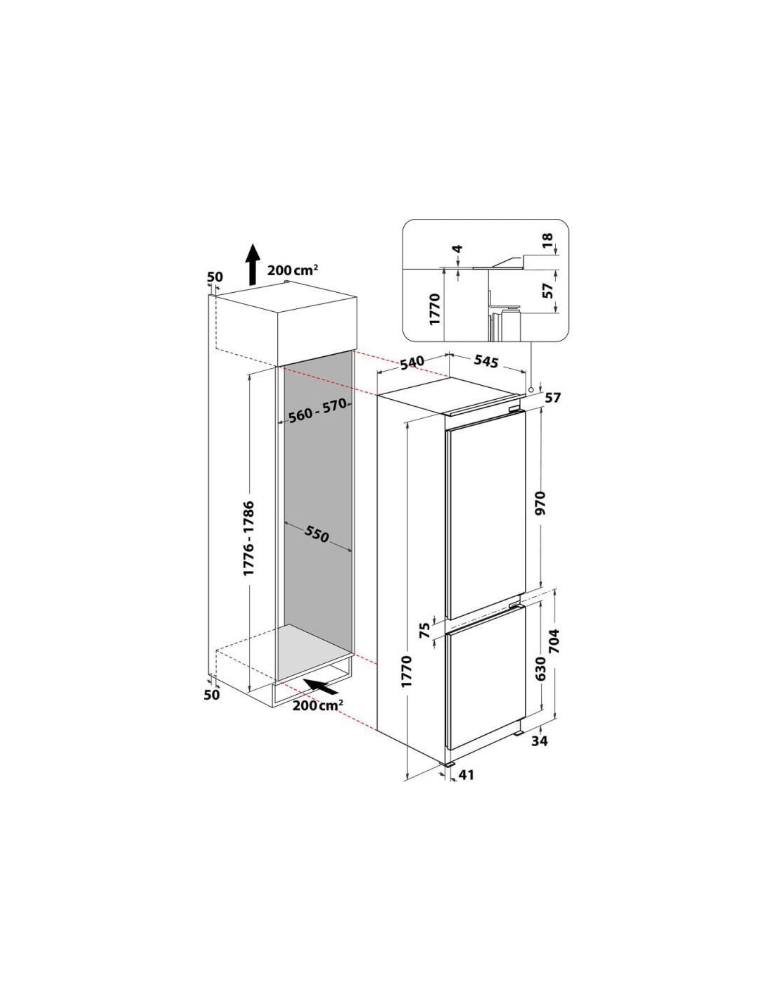 - Largura de Encastre (cm): 57