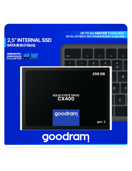 O GoodRam CX400 256GB é um disco de estado sólido (SSD) de 2.5 polegadas projetado para melhorar significativamente o desempenho do seu computador. Este SSD utiliza a interface SATA III, garantindo velocidades de transferência de dados rápidas e eficientes. É ideal para utilização em computadores pessoais (PC), proporcionando tempos de inicialização mais rápidos, carregamento de aplicações mais ágil e uma resposta geral do sistema mais fluida.