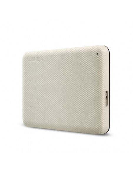 O disco rígido portátil Toshiba Canvio Advance de 1 TB oferece armazenamento conveniente e fácil de usar. Com interface USB 2.0/3.2 Gen 1 e design compacto, é ideal para backup e transporte de arquivos. Disponível em branco.