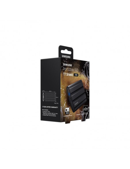 O Samsung Portable SSD T7 Shield é um disco rígido externo de estado sólido (SSD) que combina desempenho excepcional com uma construção robusta e duradoura. Com uma capacidade de armazenamento de 4 TB, oferece espaço amplo para guardar uma vasta quantidade de ficheiros, desde fotos e vídeos até documentos e jogos.
