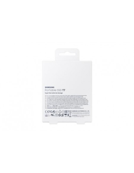 A unidade tem um design compacto e leve, construída com uma caixa de alumínio para maior durabilidade. Apesar do seu tamanho pequeno, o T7 oferece 1 TB de armazenamento para ficheiros importantes. Para garantir a segurança dos seus dados, o T7 inclui proteção por senha e encriptação de hardware AES de 256 bits.