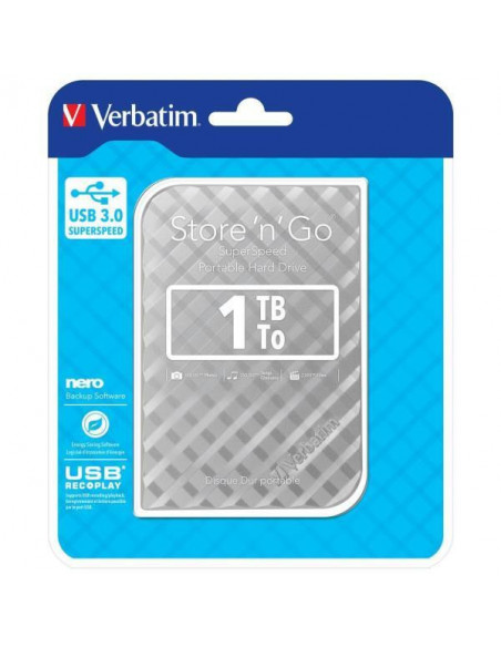 A cor prateada e detalhes em preto conferem ao disco um design elegante e discreto. É auto-alimentado, não necessitando de um carregador específico. Apesar de não incluir proteção extra, a sua construção robusta garante a segurança dos seus dados. O disco rígido externo Verbatim Store'n Go oferece uma solução conveniente e eficiente para as suas necessidades de armazenamento móvel, combinando capacidade, velocidade e compatibilidade num design compacto e de fácil utilização. A garantia de 24 meses garante a tranquilidade do investimento. As dimensões da embalagem são de 14 cm x 5 cm x 18 cm.
