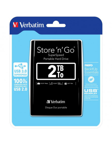 O disco rígido externo Verbatim Store'n' Go oferece uma solução de armazenamento portátil e conveniente para os seus dados.  Com uma capacidade de 2TB (2000GB), este disco oferece espaço suficiente para armazenar uma grande quantidade de ficheiros, incluindo fotos, vídeos, documentos e muito mais.  A interface USB 3.0 garante velocidades de transferência de dados rápidas, permitindo copiar e transferir ficheiros de forma eficiente.  O disco é compatível com versões anteriores de USB 2.0, assegurando a compatibilidade com uma ampla gama de dispositivos.  O seu formato compacto de 2.5 polegadas torna-o fácil de transportar e de usar em qualquer lugar.  A unidade é alimentada diretamente através da porta USB, sem necessidade de alimentação externa.  Inclui o software Nero BackItUp Essentials, que simplifica o processo de backup de dados, permitindo criar cópias de segurança dos seus arquivos de forma simples e eficiente, garantindo a sua segurança em caso de perda ou avaria do disco. Além disso, vem equipado com o software Green Button, que permite gerir o consumo de energia através da suspensão do disco quando inativo. Para mais informações sobre as especificações técnicas e o software incluído, consulte o site do fabricante ou contacte-nos.