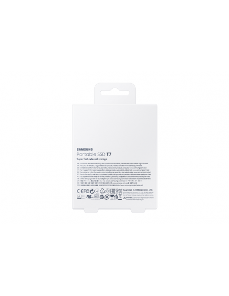 Samsung Portable SSD T7. Capacidade da drive SSD: 2 TB. Conetor USB: USB Type-C, Versão USB: 3.2 Gen 2 (3.1 Gen 2). Velocidade de leitura: 1050 MB/s, Velocidade de escrita: 1000 MB/s. Proteção de palavra-chave. Cor do produto: Cinzento