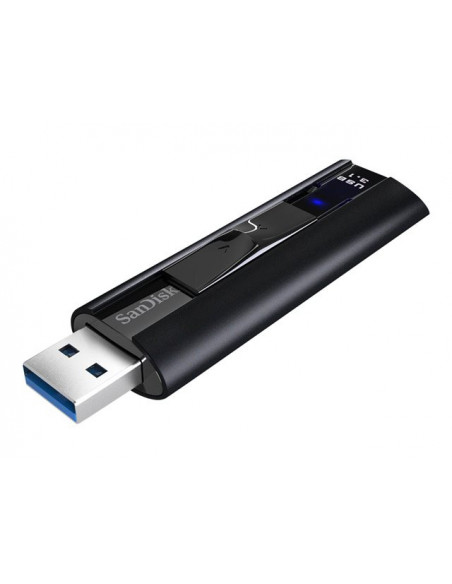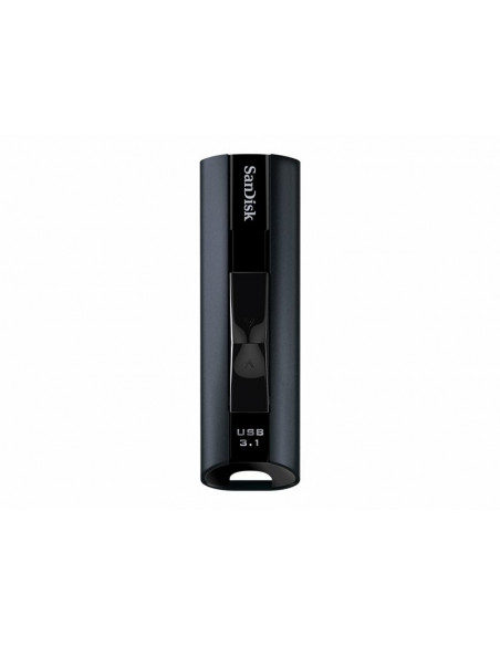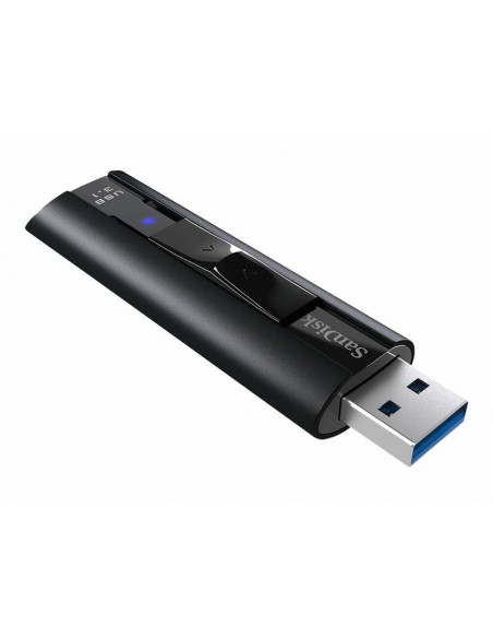 Pen drive externo SanDisk Extreme Pro com interface USB 3.1, oferecendo armazenamento de alta velocidade para arquivos grandes.  Com capacidade de 128GB, este dispositivo é perfeito para transferência rápida de fotos, vídeos e outros dados.  Design compacto e portátil. MPN: SDCZ880-128G-G46. EAN: 0619659152512.