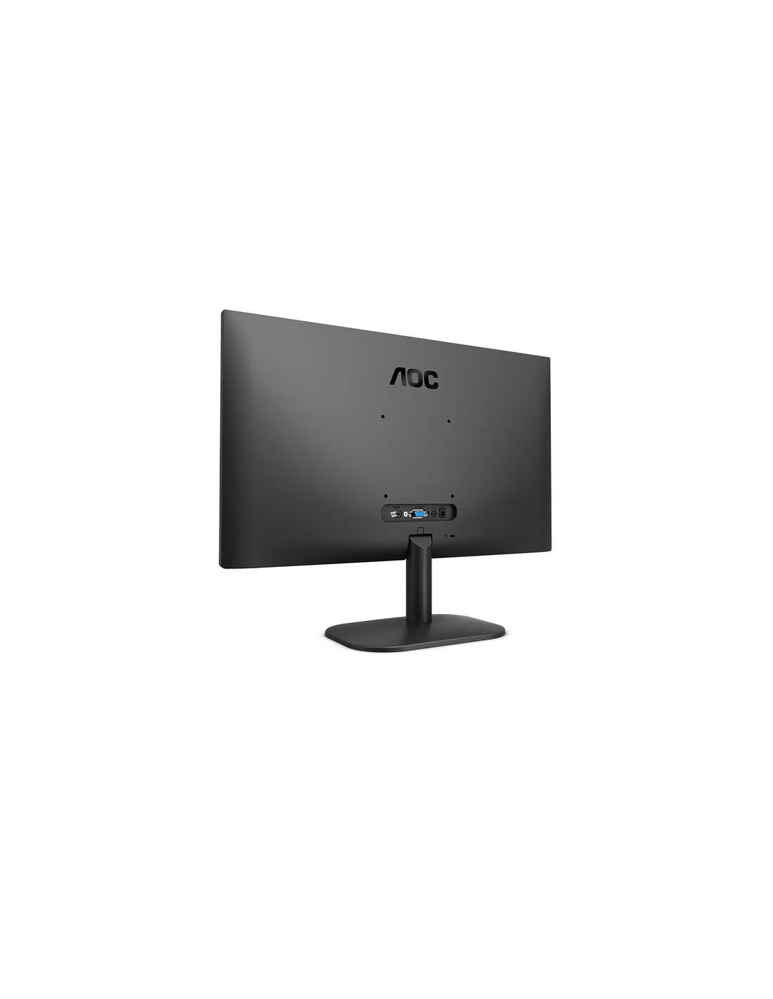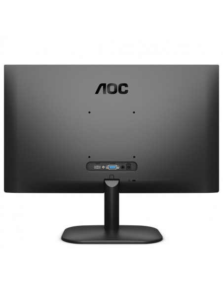 A conectividade é assegurada por portas HDMI e VGA, oferecendo versatilidade para conectar diversos dispositivos, como computadores, consolas de jogos e leitores de mídia. Inclui também uma saída para auscultadores para uma experiência de áudio pessoal. O design do monitor é simples e elegante, com uma moldura fina que maximiza a área de visualização e permite uma configuração de múltiplos monitores mais fluida. É também compatível com suporte VESA, facilitando a montagem em parede ou braços articulados.
