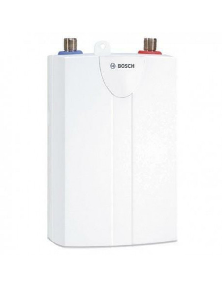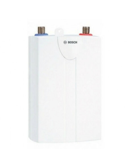 Bosch TR1000 4 T. Instalação suportada: Vertical, Tipo: Sem tanque (instantâneo), Localização do aquecedor: Interior. Potência máxima: 3500 W, Fluxo de água (mín.): 1,3 l/min, Pressão de operação mínima: 1 bar. Consumo de energia (máx): 3500 W, Voltagem de entrada AC: 220 - 240 V, Classe de eficiência energética: A. Largura: 144 mm, Profundidade: 100 mm, Altura: 250 mm