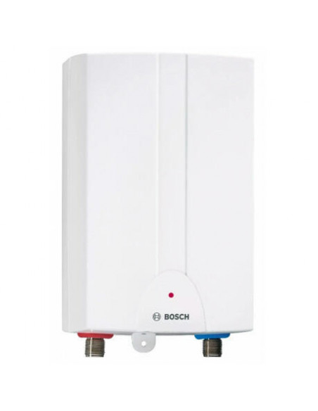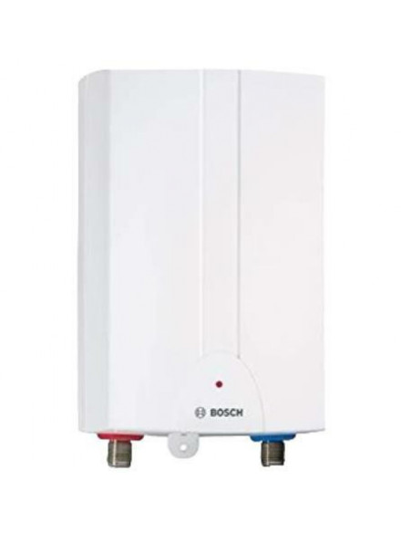 Bosch Tronic 1000 B. Instalação suportada: Vertical, Tipo: Sem tanque (instantâneo), Sistema de caldeira: Sistema de aquecimento único. Potência máxima: 6000 W, Pressão máxima: 10 bar, Eficiência: 38%. Consumo de energia (típico): 6000 W, Voltagem de entrada AC: 220 - 240 V, Consumo de energia anual: 489 kWh. Largura: 144 mm, Profundidade: 100 mm, Altura: 235 mm