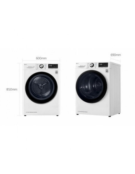 - Máquina de secar roupa LG 8 kg, dupla bomba de calor, eficiência energética A+++ (-10%), EcoHybrid™, limpeza automática do condensador, branco