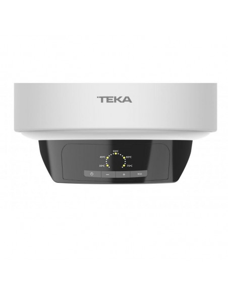 Teka Smart EWH 30 VE-D. Instalação suportada: Vertical, Tipo: Tanque (armazenamento de água), Sistema de caldeira: Sistema de aquecimento único. Nível de ruído: 15 dB. Classe de eficiência energética: A, Consumo de energia anual: 485 kWh. Largura: 340 mm, Profundidade: 340 mm, Altura: 606 mm ;