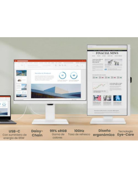 O monitor BenQ GW2786TC é uma excelente opção para quem procura um monitor de 27 polegadas com um design elegante e funcionalidades avançadas. O painel IPS de alta qualidade oferece ângulos de visão amplos (178° horizontal e vertical) e cores vibrantes e precisas (99% sRGB), ideais para trabalho ou entretenimento. A resolução Full HD (1920x1080) garante imagens nítidas e detalhadas. A taxa de atualização de 100Hz melhora a fluidez das imagens, especialmente em jogos ou vídeos. A porta USB-C integrada simplifica a conectividade, fornecendo uma solução única para transmissão de vídeo e áudio e carregamento rápido de dispositivos com até 65W de potência.
