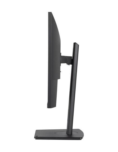 Para maior conforto do utilizador, o monitor dispõe de um suporte ergonómico ajustável em altura (150mm), inclinação (-5° a 23°) e rotação (pivô 90°). O seu design permite gestão de cabos e inclui um hub USB, entrada de auscultadores, entrada HDMI e DisplayPort, reduzindo a desordem na mesa. Para minimizar a fadiga ocular, o monitor inclui tecnologia Low Blue Light e Flicker-Free. Os altifalantes integrados de 4W oferecem um som claro e prático para o dia a dia. As dimensões com o suporte são 613.5mm (L) x 209.5mm (P) x 550.5mm (A), e pesa 5.6kg. Inclui montagem VESA (100x100mm), e é compatível com montagem na parede. O painel de controlo OSD está disponível em várias línguas, incluindo Português.