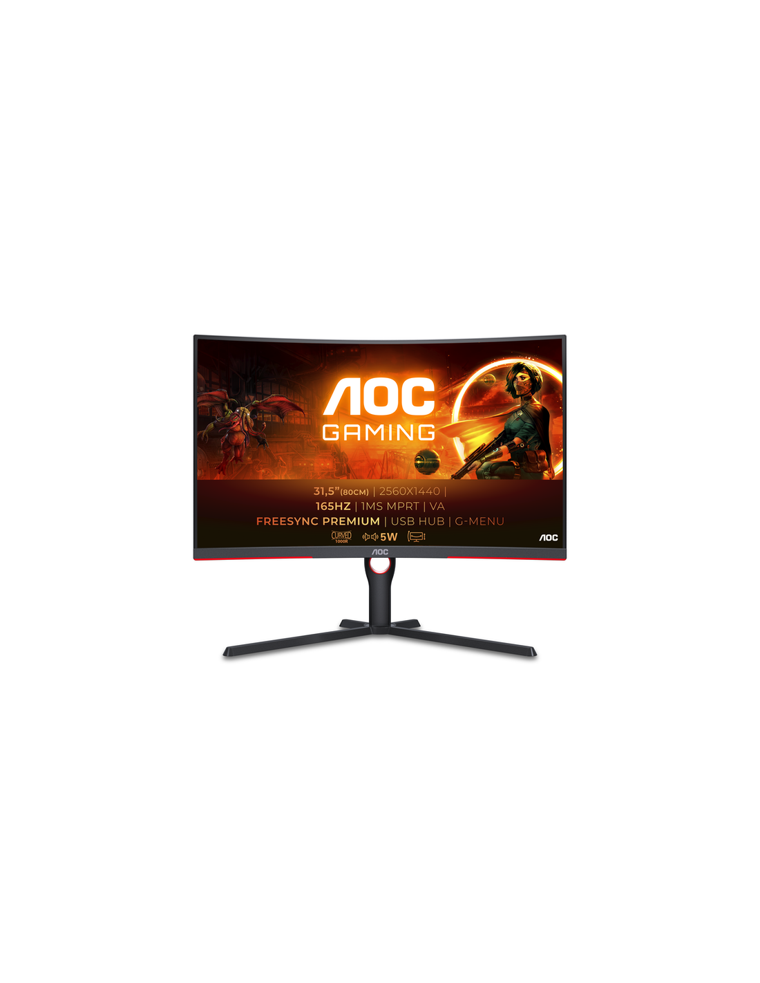 Monitor AOC CQ32G3SU/BK 31.5p QHD 165Hz FreeSync e G-Sync