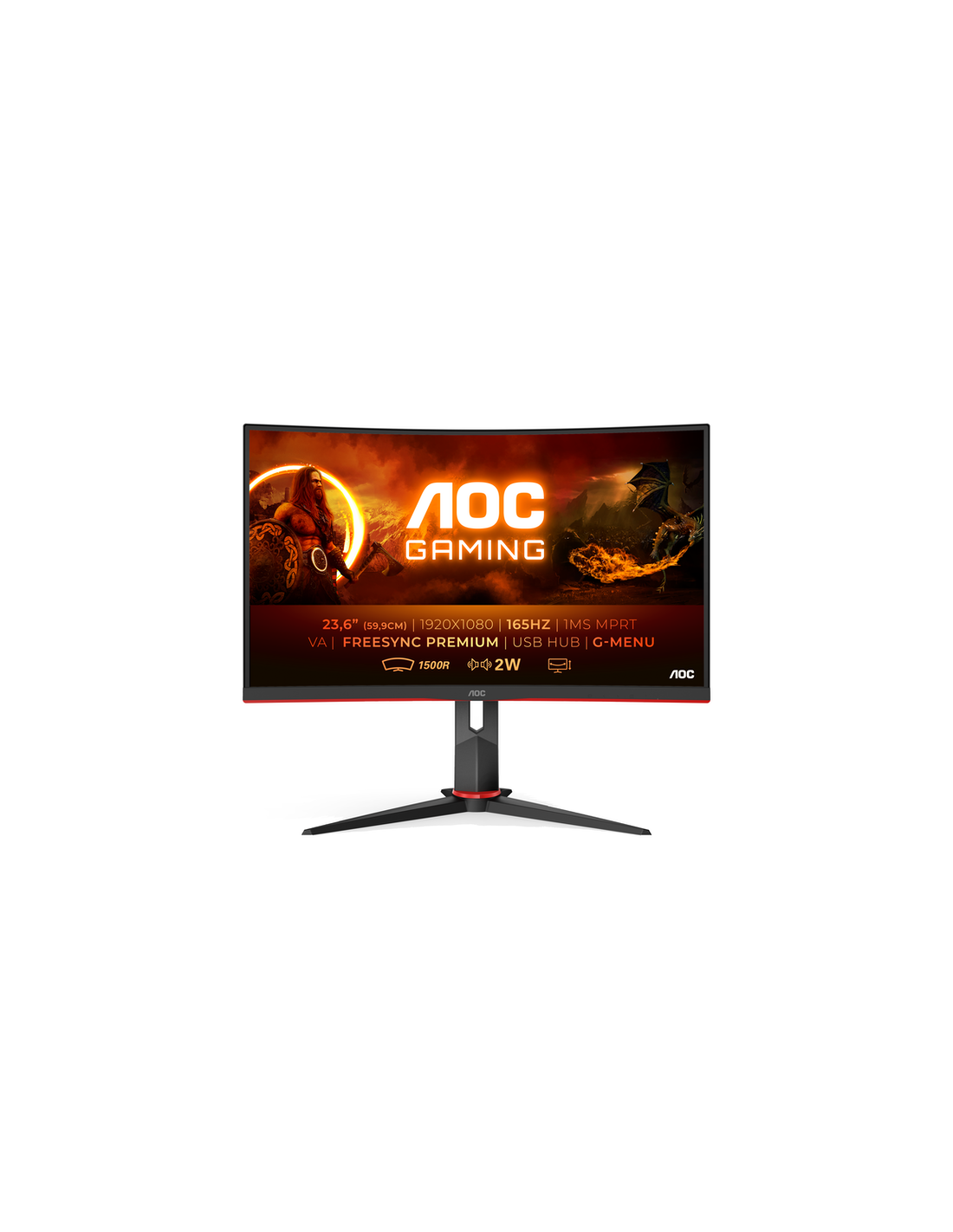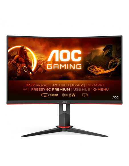 Monitor AOC C24G2U/BK 23.6" FHD 165Hz FreeSync Curvo, HDMI, DisplayPort