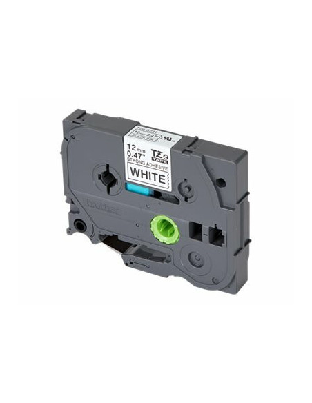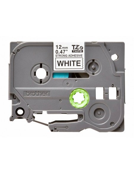 Fita BROTHER Laminada Super Adesiva c/ texto Preto e fundo Branco 12mm x 8m