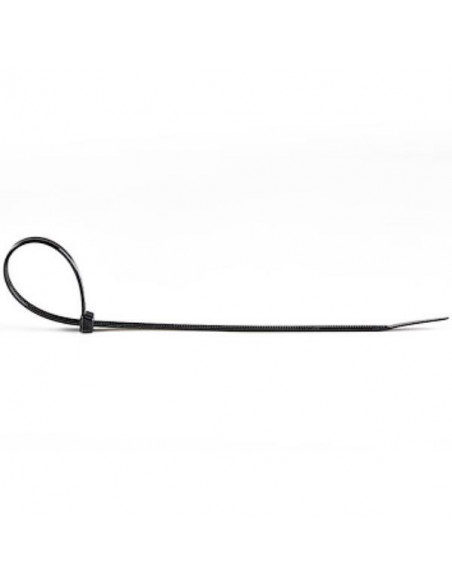 Pacote com 100 bridas pretas de 25 cm para organização de cabos. Material resistente, certificação UL e preço competitivo. Ideal para uso doméstico, escritório e aplicações industriais. Garantia de 24 meses.
