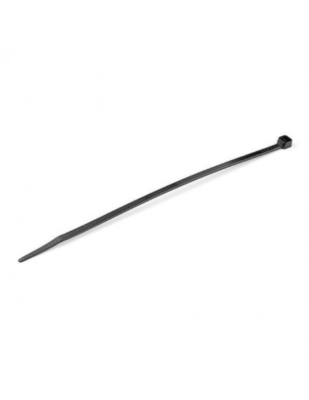 Kit com 100 abraçadeiras de nylon pretas, cada uma com 20cm de comprimento. Certificação UL. Ideal para organização de cabos e fios. Soluções práticas e eficientes para gestão de cabos.
