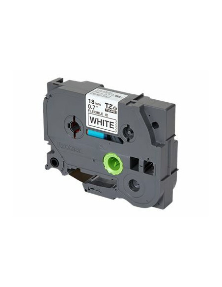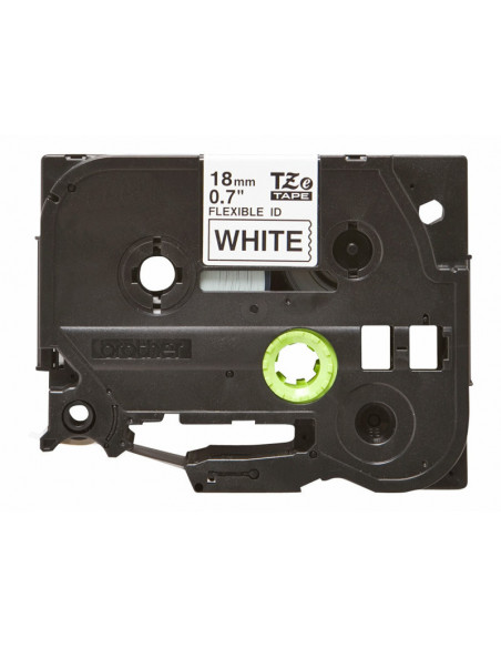 Fita BROTHER Laminada Flexível c/ texto Preto e fundo Branco 18mm x 8m