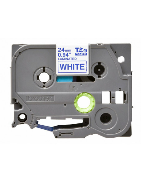 Fita BROTHER Laminada c/ texto Azul e fundo Branco 24mm x 8m