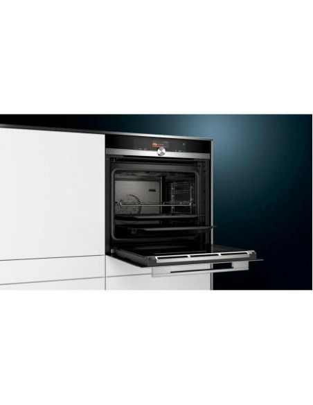 Siemens iQ700 HS636GDS2. Tamanho do forno: Médio, Tipo de forno: Forno elétrico, Capacidade interior do(s) forno(s) totais: 71 l. Local de colocação: Embutido, Tipo de controlo: Rotativo, Material interior: Esmalte. Tipo de relógio: Electrónico. Classe de eficiência energética: A+, Consumo energético (convencional): 0,87 kWh, Consumo energético (convecção forçada): 0,69 kWh. Quantidade de lâmpadas: 1 lâmpada(s), Tipo de lâmpada: LED