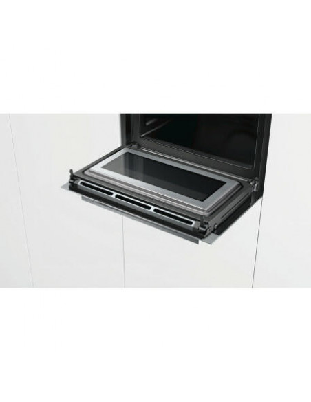 Siemens CM676G0S1. Tamanho do forno: Médio, Tipo de forno: Forno elétrico, Capacidade interior do(s) forno(s) totais: 45 l. Local de colocação: Embutido, Cor do produto: Preto, Aço inoxidável, Tipo de controlo: Rotativo, Toque. Tipo de relógio: Electrónico. Carga ligada: 3650 W, Voltagem de entrada AC: 220-240 V, Frequência de entrada AC: 50 - 60 Hz. Tipo de lâmpada: LED