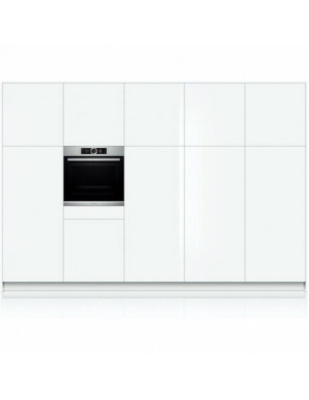 Bosch HSG636ES1. Tamanho do forno: Grande, Tipo de forno: Forno elétrico, Capacidade interior do(s) forno(s) totais: 71 l. Local de colocação: Embutido, Cor do produto: Aço inoxidável, Tipo de controlo: Toque. Tipo de relógio: Electrónico. Classe de eficiência energética: A+, Consumo energético (convencional): 0,87 kWh, Consumo energético (convecção forçada): 0,69 kWh. Comprimento do compartimento de instalação: 59,5 cm, Largura do compartimento de instalação: 55 cm, Altura do compartimento de instalação: 56,8 cm