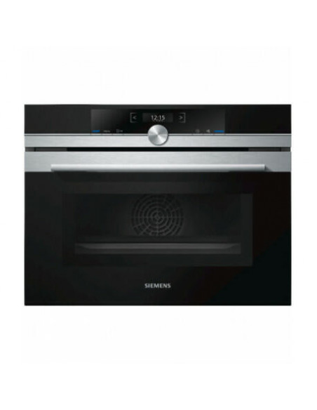 Tipo de forno /Modo de aquecimento: Forno compacto com microondas com 6 modos de aquecimento: ar quente 4D, ar quente Eco, grill com ar circulante, grill de grande superfície, grill de pequena superfície, aquecer loiça Funções adicionais com microondas: microondas solo, Forno combinado com microondas - varioSpeed?? - até 50% de poupança de tempo Amplitude da temperatura 30 °C - 275 °C Microondas com tecnologia Inverter; Potência máxima: 1000 W; 5 níveis de potência (90 W,180 W,360 W,600 W,1000 W) Volume: 45 litros Design: Puxador em inox Comandos rotativos Cavidade interior em esmalte antracite Limpeza: Porta com vidro interno especial para microondas Conforto: Visor TFT (2,8“) - visor TFT com textos cores e teclas laterais tácteis cookCont(...)