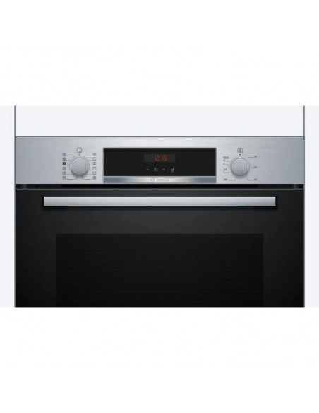 Bosch Serie 4 HQA574ES3. Tamanho do forno: Médio, Tipo de forno: Forno elétrico, Capacidade interior do(s) forno(s) totais: 71 l. Local de colocação: Embutido, Cor do produto: Preto, Prateado, Tipo de controlo: Rotativo. Classe de eficiência energética: A+, Consumo energético (convencional): 0,94 kWh, Escala de eficiência energética: A++ to D. Comprimento do compartimento de instalação: -560 mm, Largura do compartimento de instalação: 55 cm, Altura do compartimento de instalação: 60 cm ;