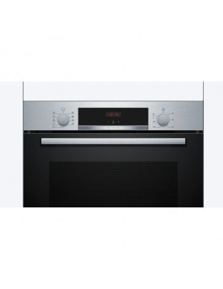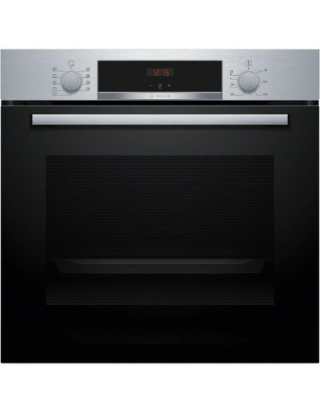 Bosch Serie 4 HBA514ES3. Tamanho do forno: Médio, Tipo de forno: Forno elétrico, Capacidade interior do(s) forno(s) totais: 71 l. Local de colocação: Embutido, Cor do produto: Preto, Aço inoxidável, Tipo de controlo: Rotativo, Toque. Indicadores LED: Status. Classe de eficiência energética: A+, Consumo energético (convencional): 0,94 kWh, Consumo energético (convecção forçada): 0,69 kWh. Tipo de lâmpada: Halogénio ;