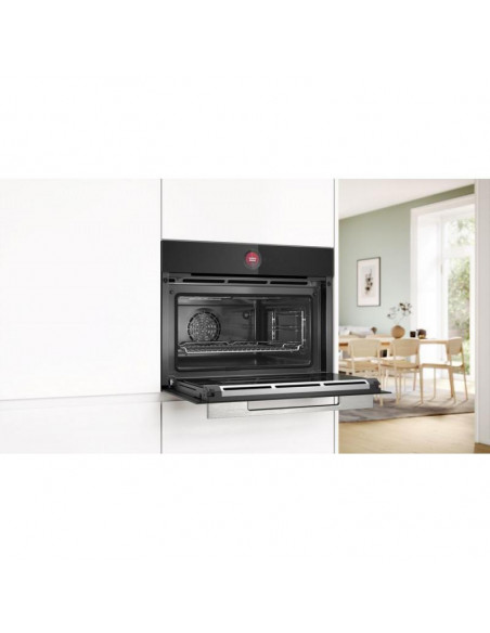 Bosch Serie 8 CBG7741B1. Tamanho do forno: Médio, Tipo de forno: Forno elétrico, Capacidade interior do(s) forno(s) totais: 47 l. Local de colocação: Embutido, Cor do produto: Preto, Aço inoxidável, Tipo de controlo: Toque. Tipo de relógio: Electrónico. Classe de eficiência energética: A+, Consumo energético (convencional): 0,73 kWh, Consumo energético (convecção forçada): 0,61 kWh. Quantidade de lâmpadas: 1 lâmpada(s), Tipo de lâmpada: Halogénio ;