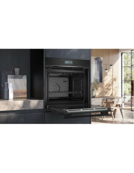 Siemens HS736G3B1. Tamanho do forno: Médio, Tipo de forno: Forno elétrico, Capacidade interior do(s) forno(s) totais: 71 l. Local de colocação: Embutido, Cor do produto: Preto, Aço inoxidável, Tipo de controlo: Toque. Tipo de relógio: Electrónico, Aplicações de controlo suportadas: Home Connect. Classe de eficiência energética: A+, Consumo energético (convencional): 0,87 kWh, Consumo energético (convecção forçada): 0,69 kWh. Quantidade de lâmpadas: 1 lâmpada(s), Tipo de lâmpada: LED