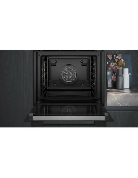 Siemens HR776G1B1. Tamanho do forno: Médio, Tipo de forno: Forno elétrico, Capacidade interior do(s) forno(s) totais: 71 l. Local de colocação: Embutido, Cor do produto: Preto, Aço inoxidável, Tipo de controlo: Botões. Classe de eficiência energética: A+, Consumo energético (convencional): 0,87 kWh, Consumo energético (convecção forçada): 0,69 kWh. Quantidade de lâmpadas: 1 lâmpada(s), Tipo de lâmpada: LED. Comprimento do compartimento de instalação: 56,8 cm, Largura do compartimento de instalação: 55 cm, Altura do compartimento de instalação: 59,5 cm