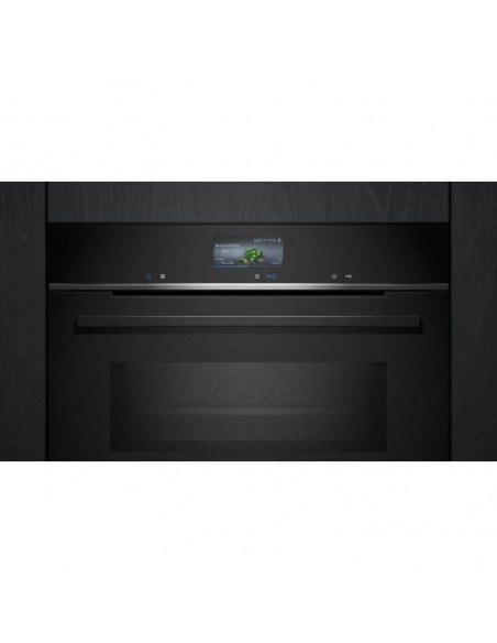 Siemens iQ700 HM736GAB1. Tamanho do forno: Médio, Tipo de forno: Forno elétrico, Capacidade interior do(s) forno(s) totais: 67 l. Local de colocação: Embutido, Cor do produto: Preto, Tipo de controlo: Toque. Carga ligada: 3600 W, Voltagem de entrada AC: 220 - 240 V, Corrente: 16 A. Largura: 594 mm, Profundidade: 548 mm, Altura: 595 mm ;