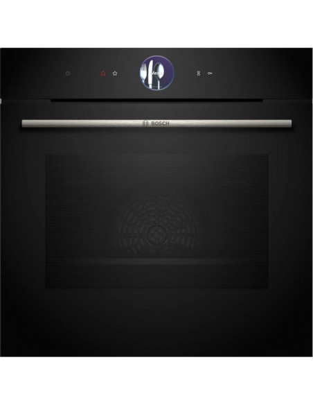 Bosch Serie 8 HBG7764B1. Tamanho do forno: Médio, Tipo de forno: Forno elétrico, Capacidade interior do(s) forno(s) totais: 71 l. Local de colocação: Embutido, Cor do produto: Preto, Tipo de controlo: Toque. Tipo de relógio: Electrónico, Tipo de temporizador: Digital. Classe de eficiência energética: A+, Consumo energético (convencional): 0,87 kWh, Consumo energético (convecção forçada): 0,69 kWh. Tipo de lâmpada: LED ;