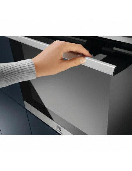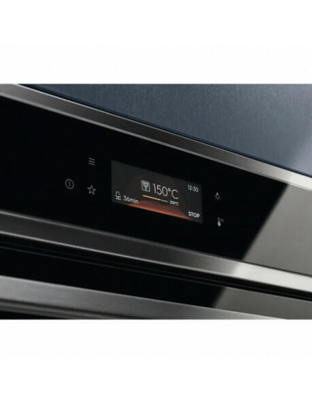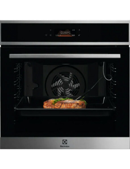 Electrolux EOE8P39X. Tamanho do forno: Médio, Tipo de forno: Forno elétrico, Capacidade interior do(s) forno(s) totais: 72 l. Local de colocação: Embutido, Cor do produto: Preto, Tipo de controlo: Botões. Tipo de temporizador: Digital. Classe de eficiência energética: A+, Consumo energético (convencional): 0,93 kWh, Consumo energético (convecção forçada): 0,69 kWh. Tipo de lâmpada: Halogénio
